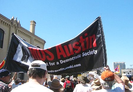 The Million Musicians March, from noon-4 p.m on Saturday, March 15, 2008, was organized by Instruments for Peace and endorsed by 15 other peace and justice groups from the area, including the Movement for a Democratic Society (MDS), CodePink and The Crawford Peace House, known for its anti-war vigils near President Bush’s ranch. The march was part of the monthly national Iraq Moratorium activities in opposition to the Bush’s Middle East occupation.