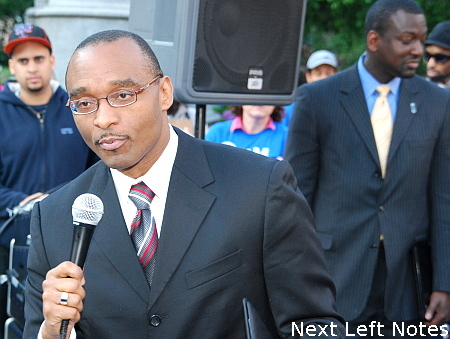 Former Black Panther Lawrence Hayes, who served twenty years in prison after having his death sentence commuted, spoke about the need for a new trial and a review of all available evidence. Hayes, a cofounder of the Campaign To End The Death Penalty, said that if the U.S. is a democracy of the people, it must listen to the people. He said that “We have heard the testimony, we have heard what went down and what didn’t go down.” Referring to the new affidavits of the trial witnesses who recanted, Hayes noted that “There are witnesses who have come forth and said that they said what they said under terror. They said what they said under duress. That, in and of itself, should be the grounds to give Troy Davis a new trial.”
