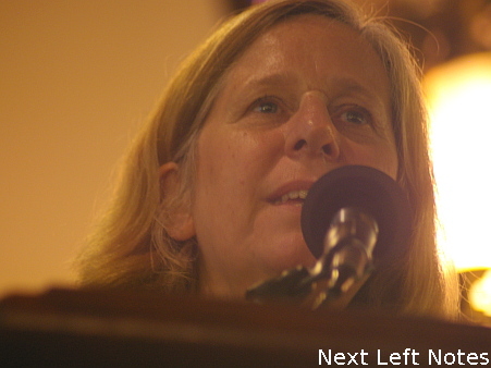 Sheehan opened with a salvo targeting Barack Obama. Arguing that Obama’s “foreign policies are essentially the same as the Bush administration”, Sheehan said that she was “one of Obama’s earliest and most ardent critics.” Sheehan expressed frustration that the peace movement is sitting idle while Obama expands the Afghan war into “Af-Pak”: the Afghanistan-Pakistan war.
