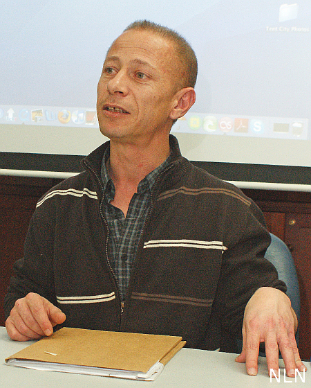 NEW YORK — On November 12, at the Center for Constitutional Rights in N.Y.C., people gathered to hear a talk by Ala ‘Jaradat, former Palestinian political prisoner and activist, on tour for the Palestinian organization, Addameer. The subject was something most Americans know nothing about, prisons in Israel and the “administrative detentions” of thousands of West Bank Palestinians. Attorney, Lamis Deek, introduced the subject and the participants. She began by quoting David Ben Gurion’s statement about the Palestinians, “The old will die and the young will forget”, and said that for the Palestinian people the slogan, “Existence is Resistance”, is very true. On order to understand the story of Palestinian political prisoners we have to start with a look at Zionism. From the beginning, the idea was for a land with only Jews. Zionist militias ethnically cleansed the area, expelling and murdering as they expanded and annexed as much land as they could. The areas cleared of Palestinians were occupied by soldiers, settlers were brought in, and the soldiers stayed. The imprisonment of their land eventually led to the imprisonment of the people. The very identity and existence of the Palestinian people was criminalized. When Obama took office people thought that, because of his relationships with Palestinians in Chicago, things would be better. Instead things got worse.