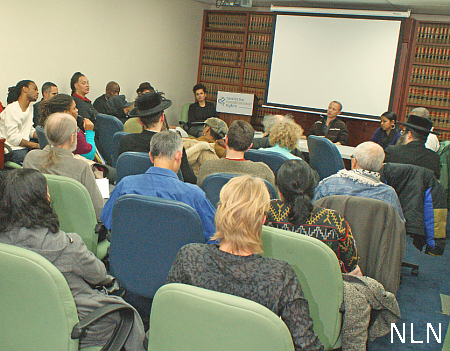 Lumumba Bandele, from the Malcolm X Grassroots Movement, and a teacher at Medgar Evers College (CUNY) in Brooklyn, spoke about providing support for incarcerated political activists in the U.S. He said that the description of life on the West Bank reminds him of stories he heard about life in Apartheid South Africa and that the Palestinian freedom movement should be supported. The international struggle against illegal detention, where indigenous peoples are criminalized, must be supported. There are many political prisoners in U.S. prisons today. In COINTELPRO the FBI documented their plots against community workers. Activists want to free their freedom fighters. We must control the language in the dialogue and educate the community. Hip-Hop is now being used to connect people around the world and teach people about freedom fighters, from all over, that are in prison. We should be speaking to new people, not the same ones again and again, who already agree with us. When speaking to our community, strategize. He quoted Fidel Castro saying that, “solidarity is a verb”, you have to be doing something or there is no solidarity.
