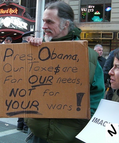 On March 19, as protesters gathered in Time Square to demand an end to U.S. military intervention in Iraq and Afghanistan, the NBC news ticker announced that U.S. missiles had hit targets in Libya. Dozens of Tomahawk missiles, costing over a million dollars each, had been fired in an undeclared war.