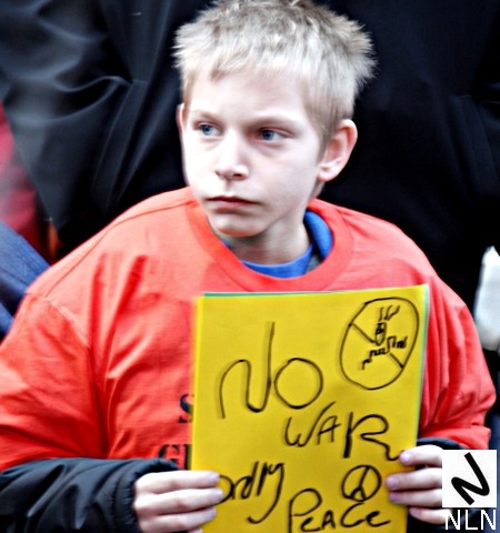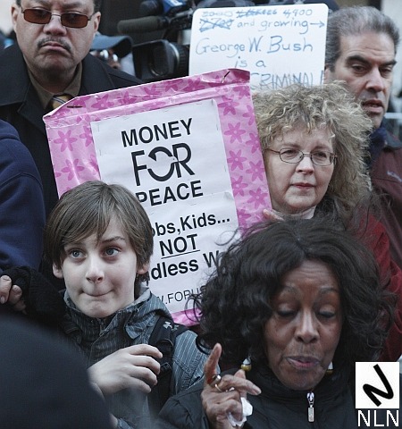 NY1 covered the protest and one image from their coverage struck this observer as both indelible and archetypal. A protester turned to the NY1 videographer and said, “Yeah that’s a great idea. We’ve got a third war we’ll get ourselves into.”
