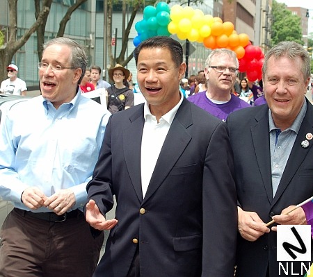 Governor Andrew Cuomo signed a “same sex marriage” bill into law at 11:15 p.m. on Friday and although the law won’t take effect until July 24, 2011, New Yorkers took to the streets for one big party. The law was signed on the eve of the 42nd annual gay pride parade and Sunday’s march was festive to say the least. The parade route, New York’s storied Fifth Avenue, was lined with onlookers holding signs that said, “Promise Kept” and “Thank You Governor Cuomo.”