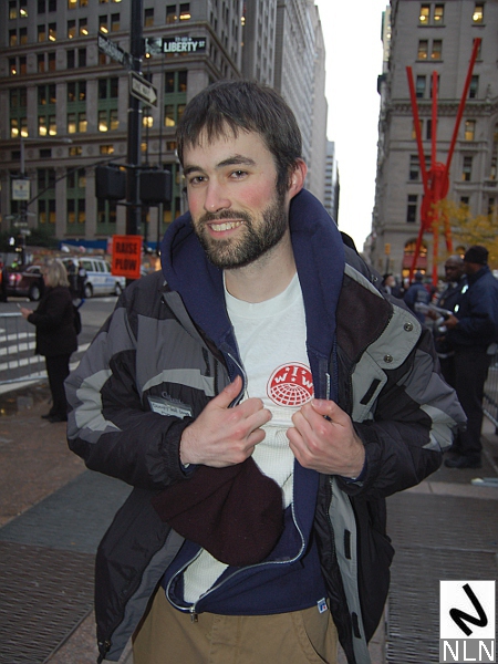 At Zuccotti we saw police in riot helmets using white cable ties to lash barricades together as they encircled a small number of protesters still in the park. What purpose this served was unclear. As we left the park my old friend Mark Bray said hello. Mark is an OWS press liasion and a Wobbly. I asked if he was still in the Union and Mark said that he was a little behind on his dues, but still a Wob — as he opened his jacket to show me his IWW t-shirt.