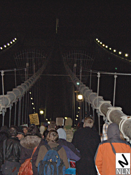 In the park at the foot of the bridge, members of Occupy Wall Street were thanking marchers. A nice end to a shining example of people power.