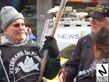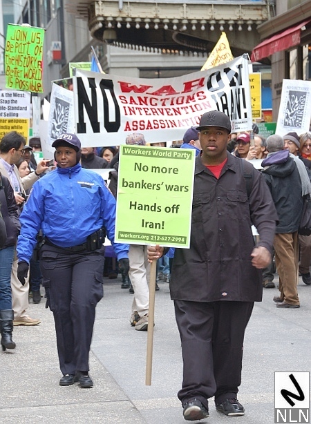 Hedemann told NLN that he was marching because, “The War Resisters League would rather protest conflicts before they become full-blown conflagrations. Considering the recent saber-rattling by the Obama administration and Israel, there is a palpable danger that that conflict will escalate into war.”