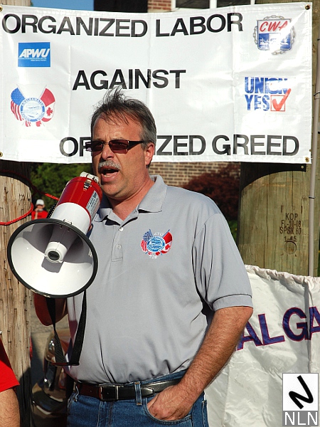 Steve Lawton , business agent for the Communications Workers of America (CWA) Local 1102, mc’d the rally.