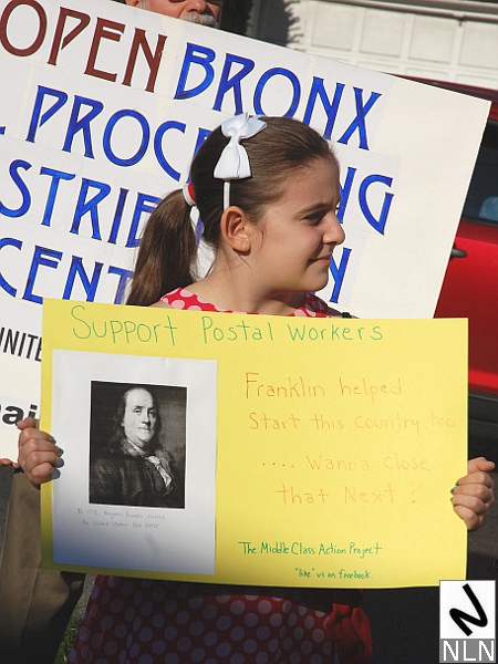 His 10-year-old daughter, holding a sign that read, “Support postal workers,” nodded in agreement.