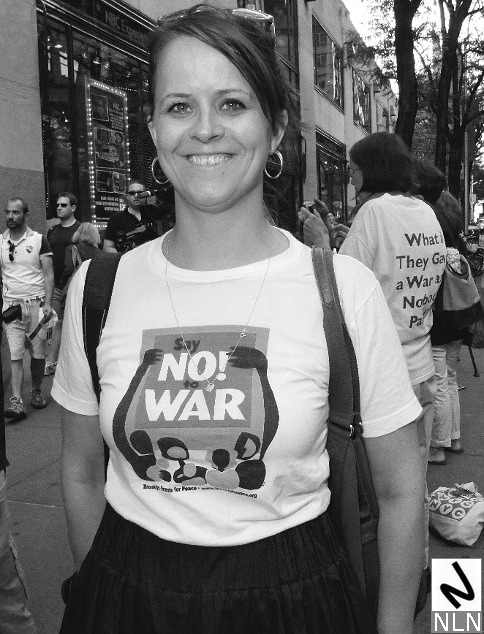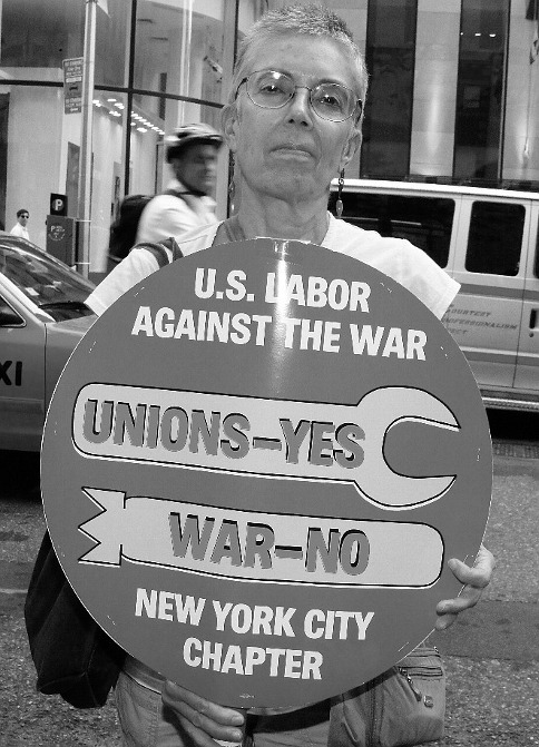 Jan Clausen of USLAW (and the UAW) outside NBC studios