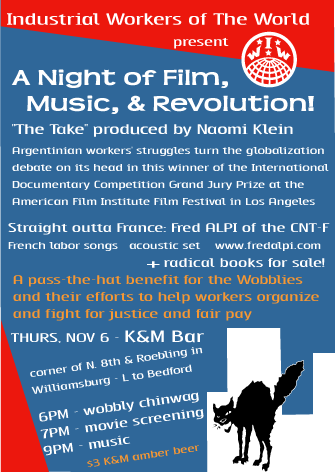 NEW YORK — The Industrial Workers of the World present a Night of Film, Music & Revolution!