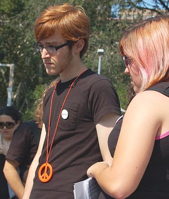 After the arrest of Rice and Millard, the remaining protesters formed a line in front of the barricades and began chanting: “Arrest Bush, torture is illegal…” and “Bush is a war criminal, we will not be silent”. Police sealed the area - pushing press into pens - and brought in vans and uniforms armed with flex cuffs. NYPD Lt. Wolf issued an order to disperse through a bullhorn and then ordered the arrest of the 13 nonviolent activists. The 13 arrested in the second wave of arrests were all processed at Midtown North (on 54th Street) were they were charged with disorderly conduct and given DATs (desk appearance tickets). They will be arraigned on October 17th at 100 Centre Street. Ironically, this is the anniversary of the Times Square Recruiting Center arrest of the Granny Peace Brigade - a case they ultimately won.