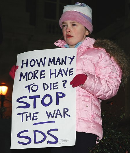 Washington, DC - January 28, 2007. A wide array of SDS/MDS chapters journeyed to Washington D.C. to take part in the United for Peace and Justice (UFPJ) anti-war protest held on January 27, 2007. An estimated 500,000 protestors crowded the Mall area between the Washington Monument and the Capitol building. SDS was among those on the Mall - and with the anti-authoritarian bloc that assembled separately at DuPont Circle. A group of SDS chapters joined the anti-authoritarian feeder at DuPont - a feeder that eventually marched on the Capitol itself - forming what Howard Community College (HCC) SDS termed a “Radical Student/Youth Contingent”.