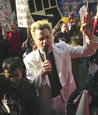 “We are asking people to bring noisemakers: pots and pans and other weapons of mass democracy,” said Thomas Good of Movement for a Democratic Society, the post-grad wing of SDS. “We are nonviolent but we will not be silent - what we are seeing here is not a liberal democracy gone somehow wrong. This is an emerging fascism and it is our duty as residents of the US to stop the madness,” he added.