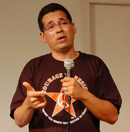 New York, NY - August 17, 2007. Iraq War Veteran and War Resister Agustin Aguayo spoke at NYC’s Brecht Forum, Wednesday, August 15. The event was organized by the Campus Antiwar Network (CAN) and endorsed by a number of organizations many of which tabled. Recently released from prison, Aguayo is taking his case to the Supreme Court - looking to have his two felony convictions (missing movement and desertion) overturned. The current speaking tour is designed to raise awareness and to raise funds for litigation.