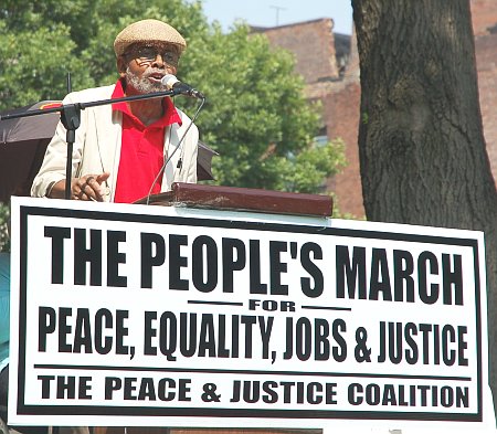 Amiri Baraka speaks at the People’s March for Peace (Photo: Thomas Good / Next Left Notes)
