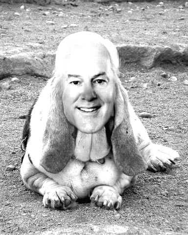 A doghouse neatly crafted from a large cardboard box juts out from the street-level plate glass window of the Chase Tower building on W. Sixth Street in downtown Austin, Texas. In its door is the image of a basset hound bearing the facial features of Pres. George Bush’s pet senator. Above the door is a sign reading: “Offices of Senator John Cornyn, Republican of Texas.”