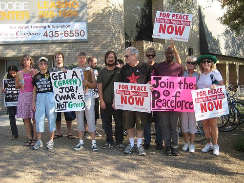 The demonstrators represented MDS/Austin, CodePink and the Campus Antiwar Movement to End the Occupations (CAMEO). The action was part of the Iraq Moratorium, a monthly event during which activities in opposition the Iraq war take place throughout the country.