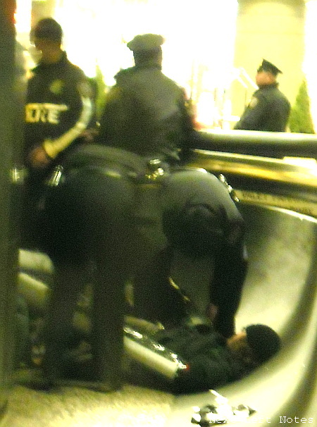 Near the lockdown, police and secret service denied working press access to the site, ostensibly because the Marriott is private property. However, the presence of New York Mayor Michael Bloomberg and other politicians at the event may have influenced police behavior. Perhaps related, police moved protesters out of sight of hotel guests — and the press — before attempting to remove the protesters’ lockdown devices.