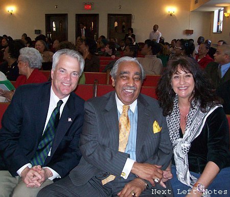 The introduction of the keynote speaker was given by Democratic Congressman Michael McMahon, NY-13, who was previously the New York City Councilman for this same district. Most in the church knew the newly elected Congressman, and referred to him as “Uncle.” Congressman McMahon, though pleased at being included in the family of the church ministry, thought of himself more as a “brother” or “cousin” as he put it. He spent many years in this district and knew Rev. Carolina well, and recounted stories of how he watched some of those in the church grow up. The Congressman then went on to introduce Congressman Charles B. Rangel of Harlem, Chair of the House Ways and Means Committee. He spoke of when he was called to the Capitol for his first meeting with members in Washington, and was to meet with Congressman Rangel. He couldn’t imagine that the illustrious Congressman even knew who he was, and then he recounted that “I was walking down the hall to meet Congressman Rangel and he saw me…he said from across the hallway ‘I have waited 30 years for you, what took you so long!'”