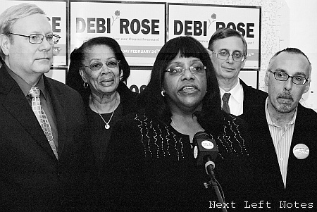 Next Left Notes endorsed Debi Rose early on — due to her long history of anti-war and civil rights activism as well as her career long commitment to affordable healthcare, quality education and improving public transportation. Recently NLN produced a video clip underscoring the endorsement — and noting Mitchell’s fondness for comparing himself to Rose.