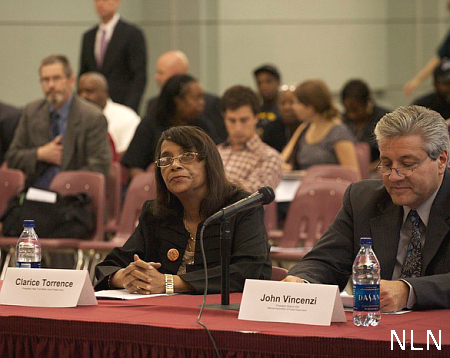 There were several other speakers at the meeting who represented civil rights organizations here in N.Y. Ayesha Mahmooda works for DRUM (Desis Rising Up and Moving), an organization with 600 members of mostly South Asian backgrounds in Queens, N.Y. The FBI has been coming into their community and asking people questions about their neighbors. The main targets are in the Muslim community where people have been asked to be informants about what is happening in their mosques. DRUM has been speaking to people in the community, going door-to-door, and telling people what their rights are and how to file complaints about the activities of the FBI. They had a press conference in front of the Flushing Library where they reported what was going on and told how racial profiling violated people’s lives. DRUM has been getting help from the students at the City University of New York Law School in Queens.