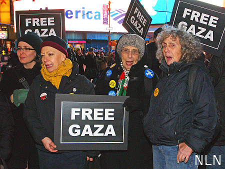 NEW YORK — On the very cold evening of December 18th, Times Square was the scene of a send-off rally for the New Yorkers participating in the Gaza Freedom March. The event will take place in Gaza on the first anniversary of the brutal Israeli attack (the subject of the Goldstone Report) that killed over 1,400 people, mostly civilians, almost 400 being children.