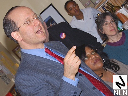 The Staten Islanders gathered around and asked many questions about how to push President Obama on health care (“elect me”), about the escalation of troops in Afghanistan (“there is no military solution”), and about how whether or not he himself was really a viable candidate (“the polls show that Gillibrand will lose”). Newly elected City Councilwoman Debi Rose told the guests that they already knew the way to win. “You spread the word mouth to mouth, the old fashioned way, talking up your candidate to friends, family, colleagues. Never letting up.”
