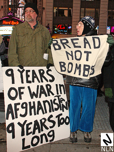 NEW YORK — December 16, 2010. December 12th was a bitter cold night but that did not discourage a hundred people from attending a peace demonstration at Times Square. The protest was being held in unity with a large demonstration in Washington D.C.