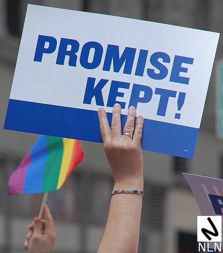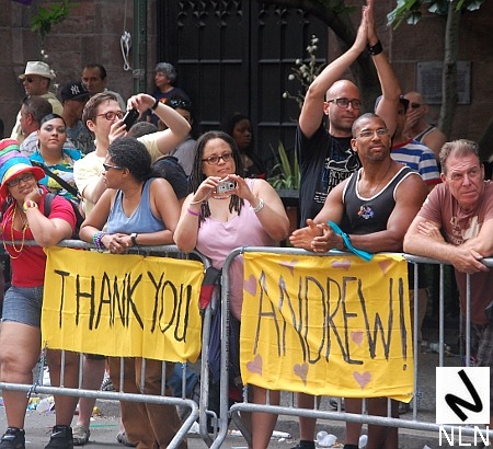 Governor Andrew Cuomo signed a “same sex marriage” bill into law at 11:15 p.m. on Friday and although the law won’t take effect until July 24, 2011, New Yorkers took to the streets for one big party. The law was signed on the eve of the 42nd annual gay pride parade and Sunday’s march was festive to say the least. The parade route, New York’s storied Fifth Avenue, was lined with onlookers holding signs that said, “Promise Kept” and “Thank You Governor Cuomo.”
