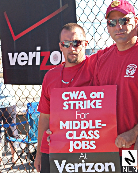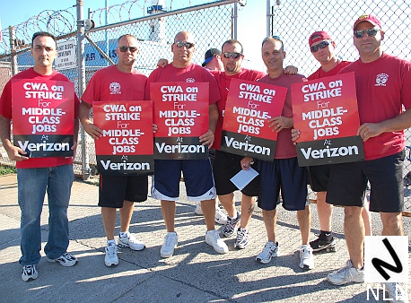As I was driving to work this morning a Verizon van approached the red light at Lynhurst and Tompkins. The light turned red and a full five seconds later the van rolled through the intersection without slowing down. In the parlance of traffic enforcement that’s called “driving through a red light.” I strained to see who was driving and saw a white shirted male. And then it dawned on me: management is doing the job of CWA workers who are out on strike. And the managers are not happy about getting their hands dirty.