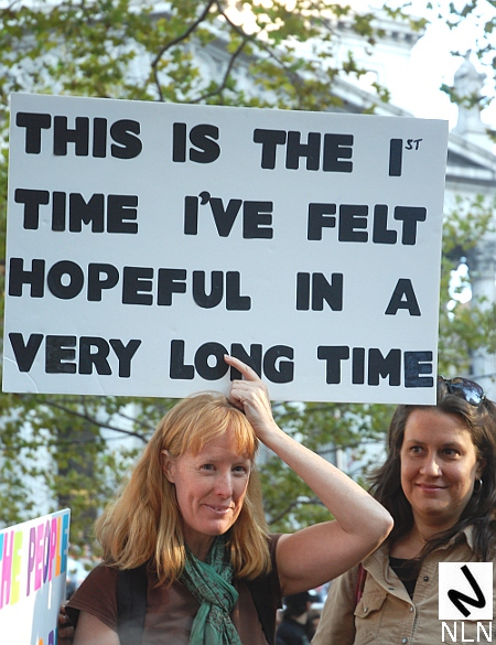 One protester expressed it very well. As she marched along West Broadway, heading towards Washington Square, she carred a sign that said simply, “You have a right to be happy.”