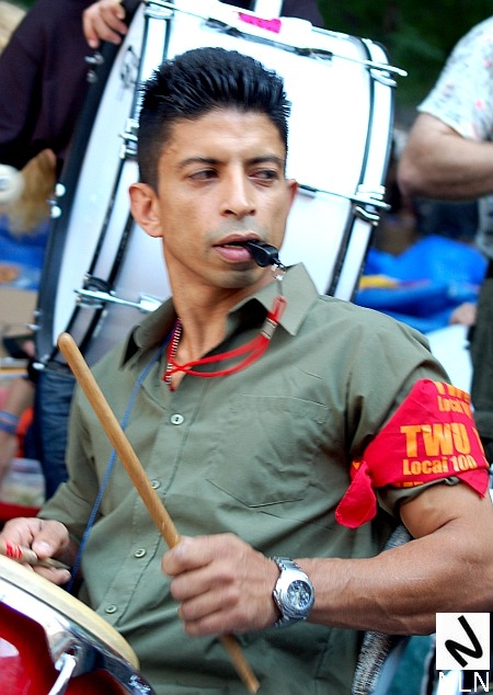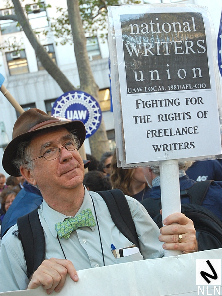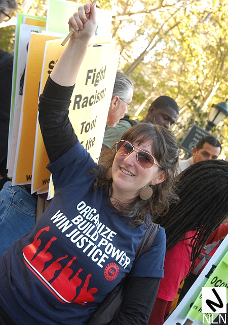 An organizer from Toledo (with UAW sign) marching with Occupy Wall Street