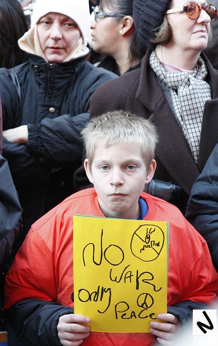 At 7 p.m. on January 15, candles were lit in countries throughout the world in an act of solidarity with Dr. King’s values and with the people who share them. In New York it was a bitterly cold night with sub-freezing temperatures, yet 500 people gathered on the steps of the Cathedral of St. John the Divine. The crowd was mostly Occupy Wall Street protesters and their allies, many of whom had walked there from Liberty Square in lower Manhattan — a 9 mile journey. After the candles were lit the crowd began a 10 block walk along Broadway, marching past Columbia University and making their way to Riverside Church. The streets were empty because of the cold but the participants walked slowly — singing and holding candles.