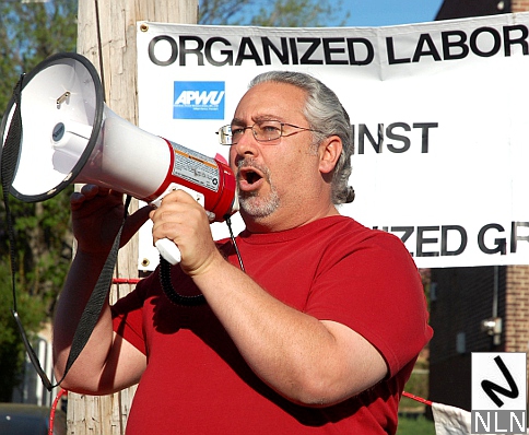 Steve Lawton , business agent for the Communications Workers of America (CWA) Local 1102, mc’d the rally.