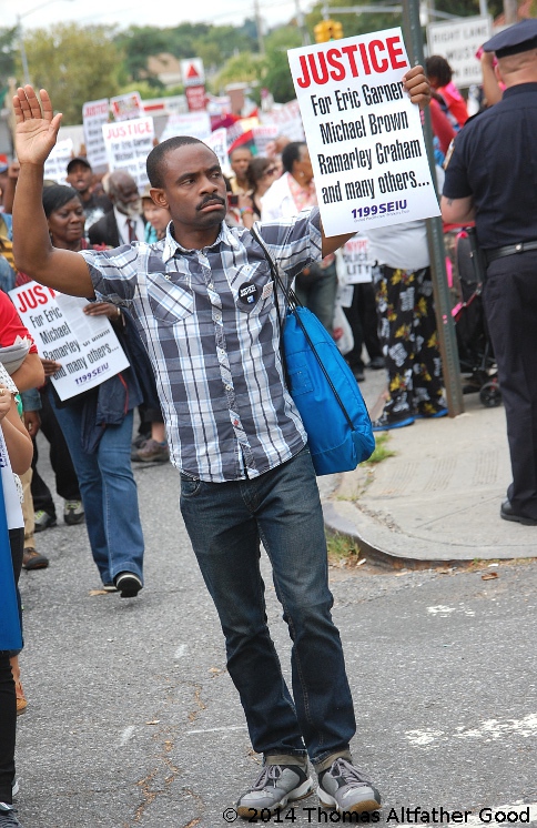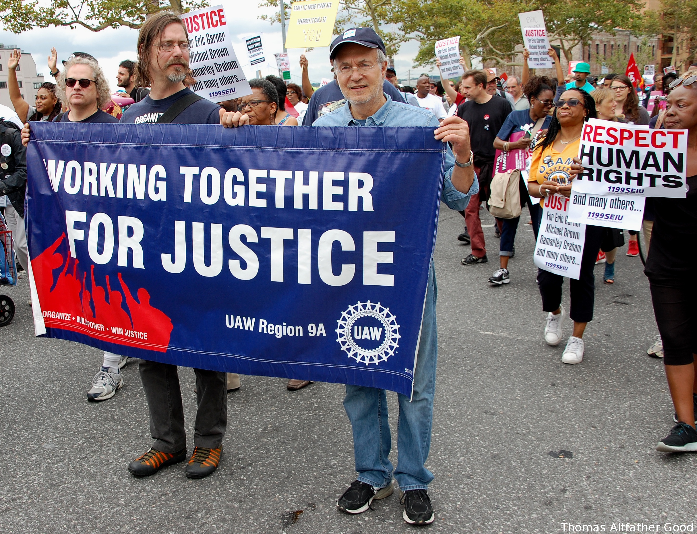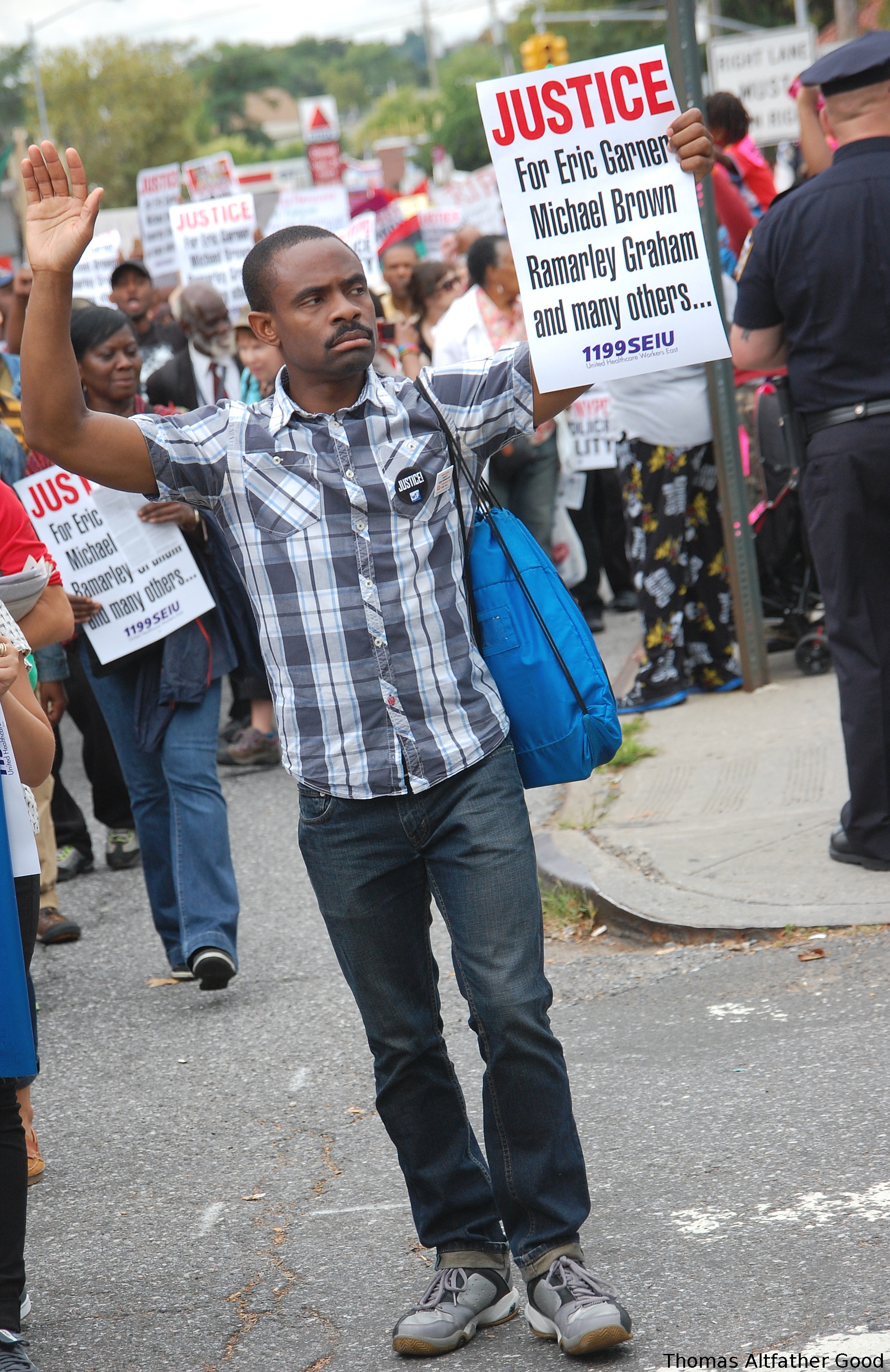 The United Federation of Teachers and 1199 SEIU, a healthcare workers union, co-sponsored the march, along with the National Action Network and the NAACP. There were no incidents or arrests. |