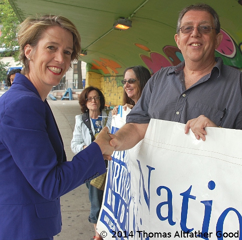 Supporters included Zephyr Teachout, a Fordham University law professor who is running against Governor Andrew Cuomo in the 2014 Democratic gubernatorial primary, former Governor David Paterson, and City Council Speaker Melissa Mark-Viverito. |