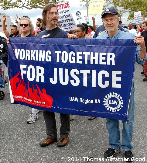 Labor was well represented in the march (Pictured: UAW members Scott Sommer, Joel Schlemowitz, and George Albro) (Photo: Thomas Altfather Good) |